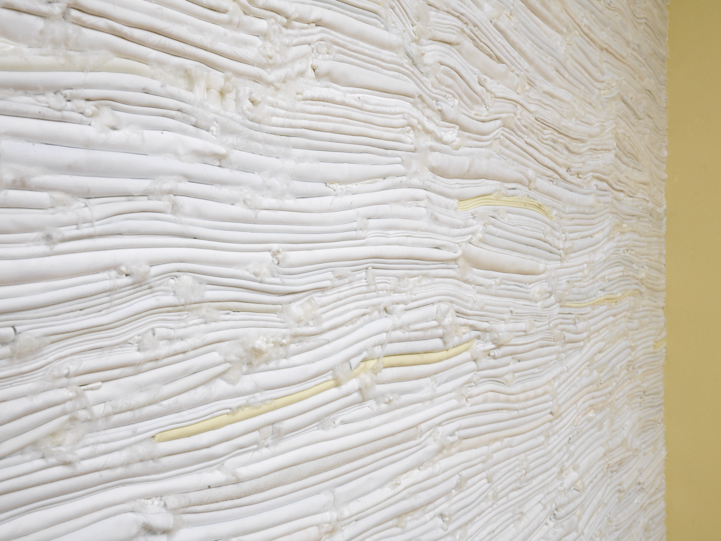 ohne Titel, 2007 Hotelwäsche, Watte, Wattestäbchen, Tampons, Würfelzucker, Styropor, Tic Tacs, Papiertaschentücher, Zigarettenblättchen ca. 306 x 450 x 30 cm