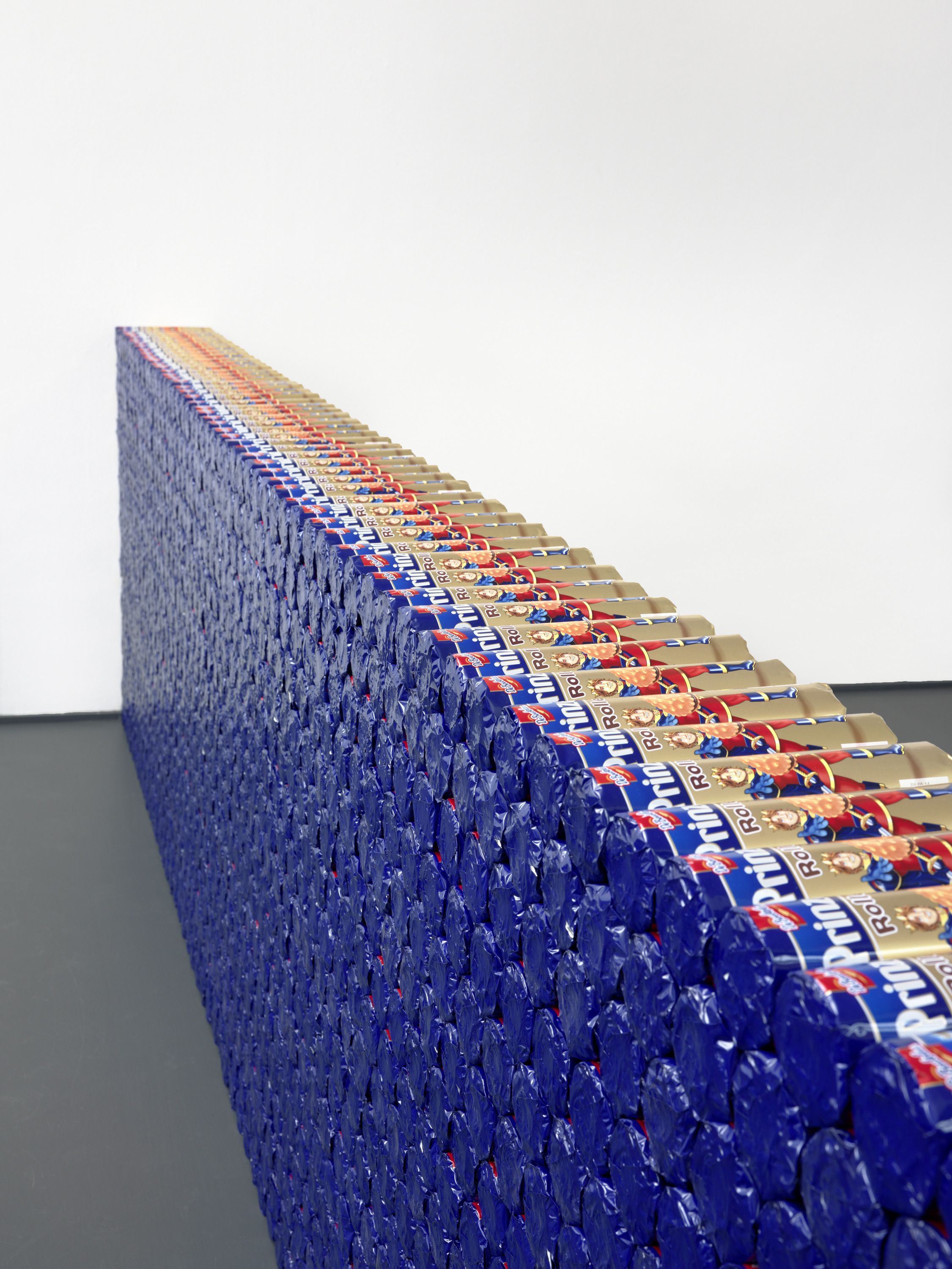 ohne Titel, 2013 Schokoladenkekse mit Verpackung (Prinzenrollen) ca. 107 x 466 x 25 cm