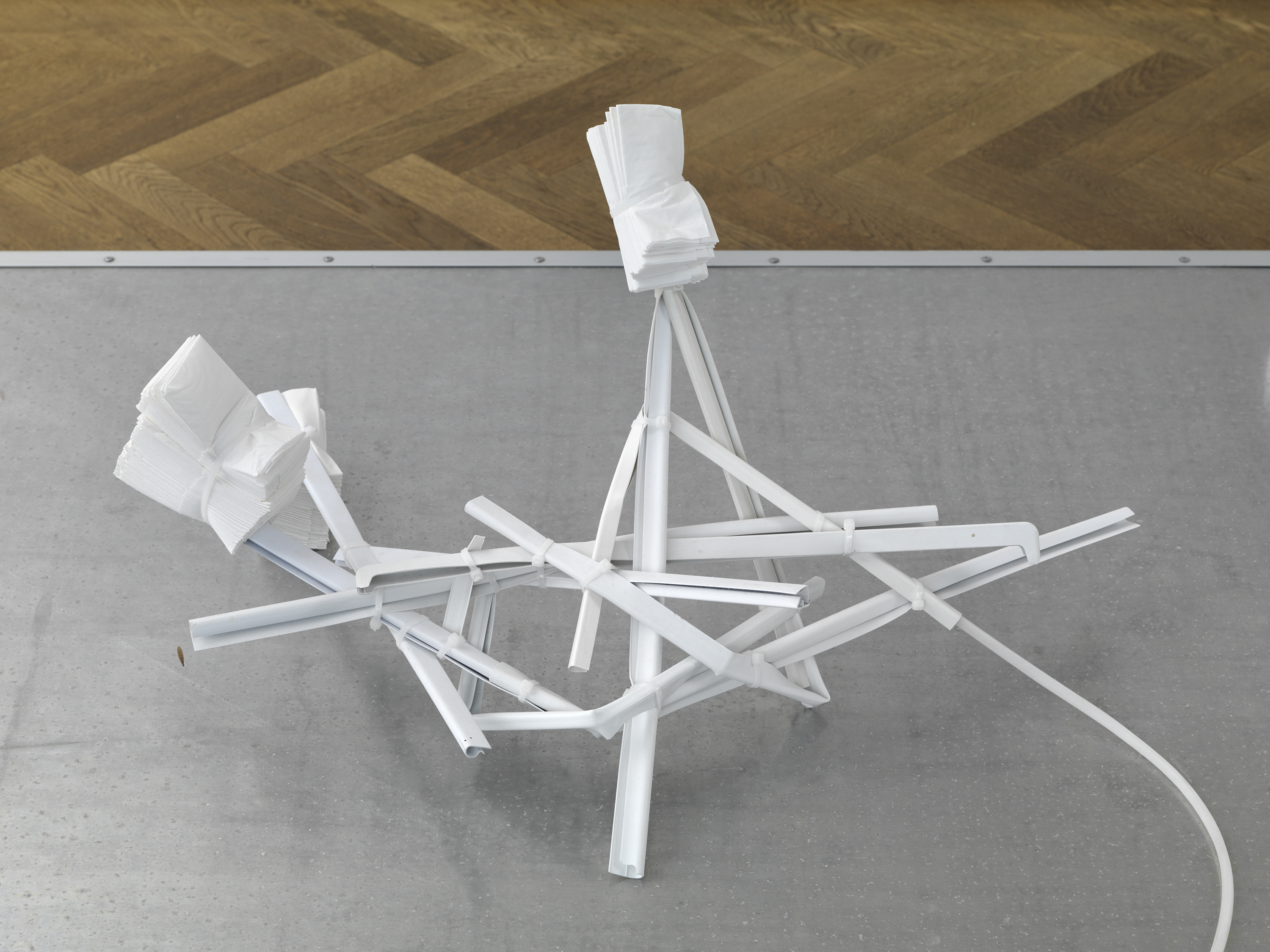 Acrylglas, Kühlschrankgitter, Neonröhre, Papier,