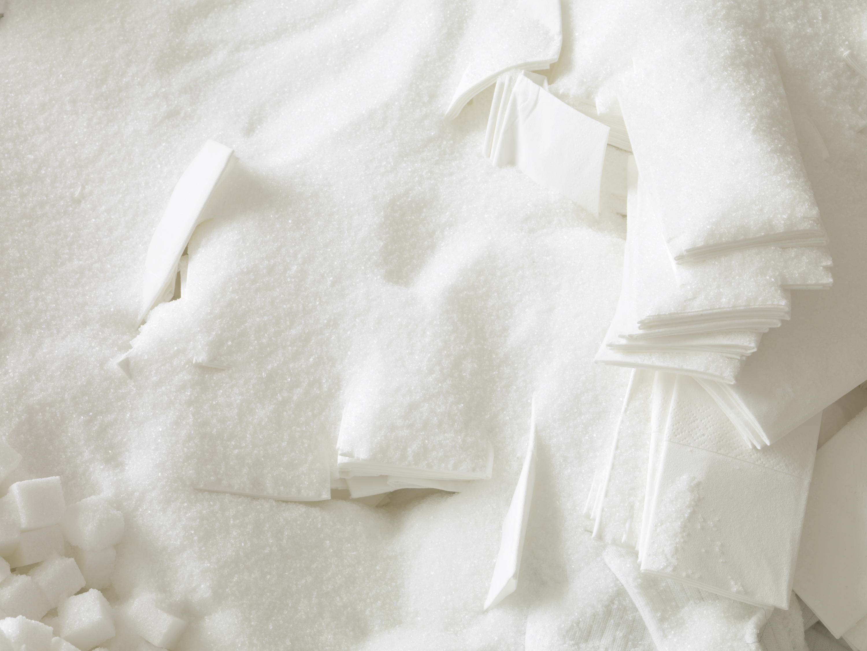 cubes, icing sugar, flour, cotton wool,