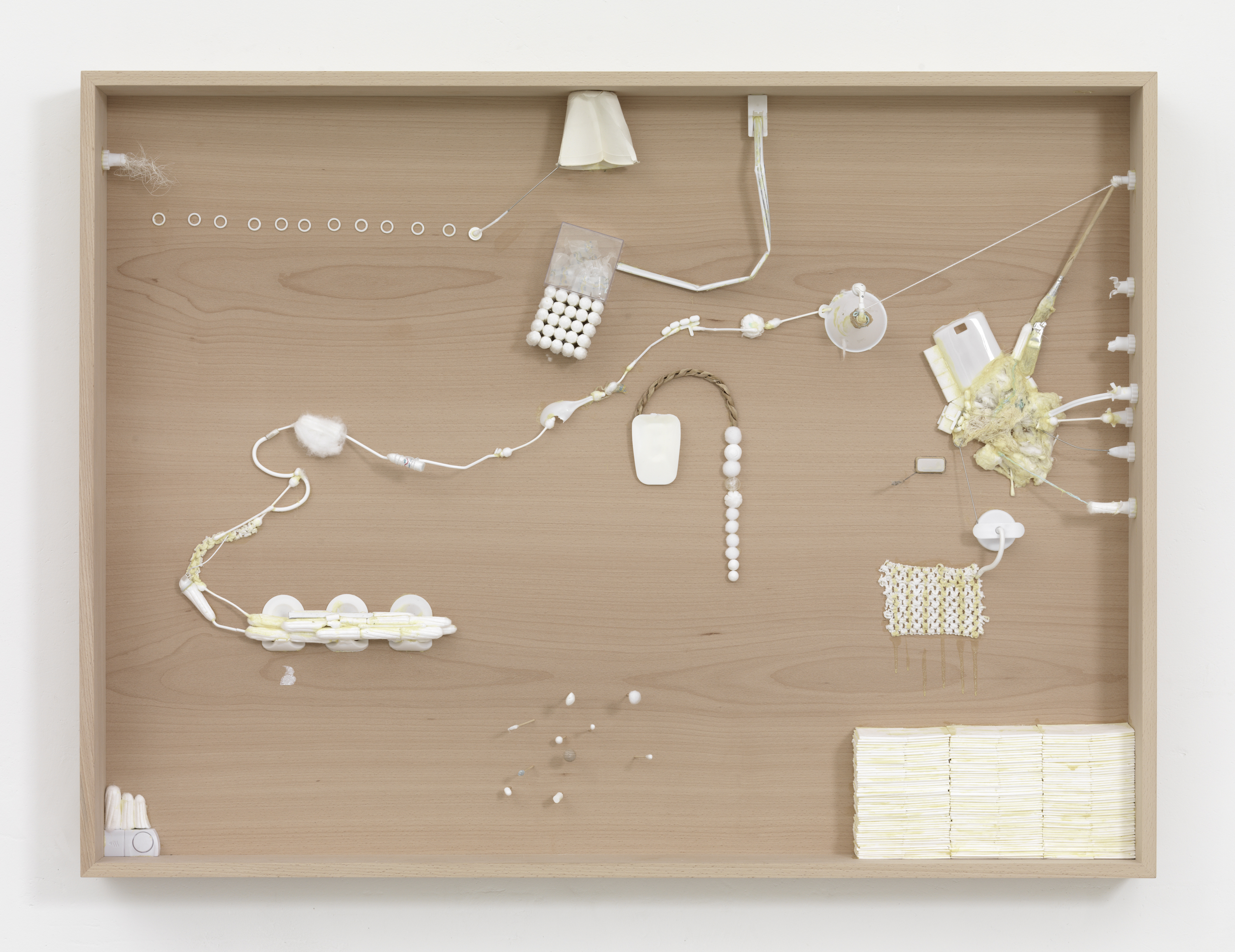 wood, paper tissues, tampons, plastic parts,