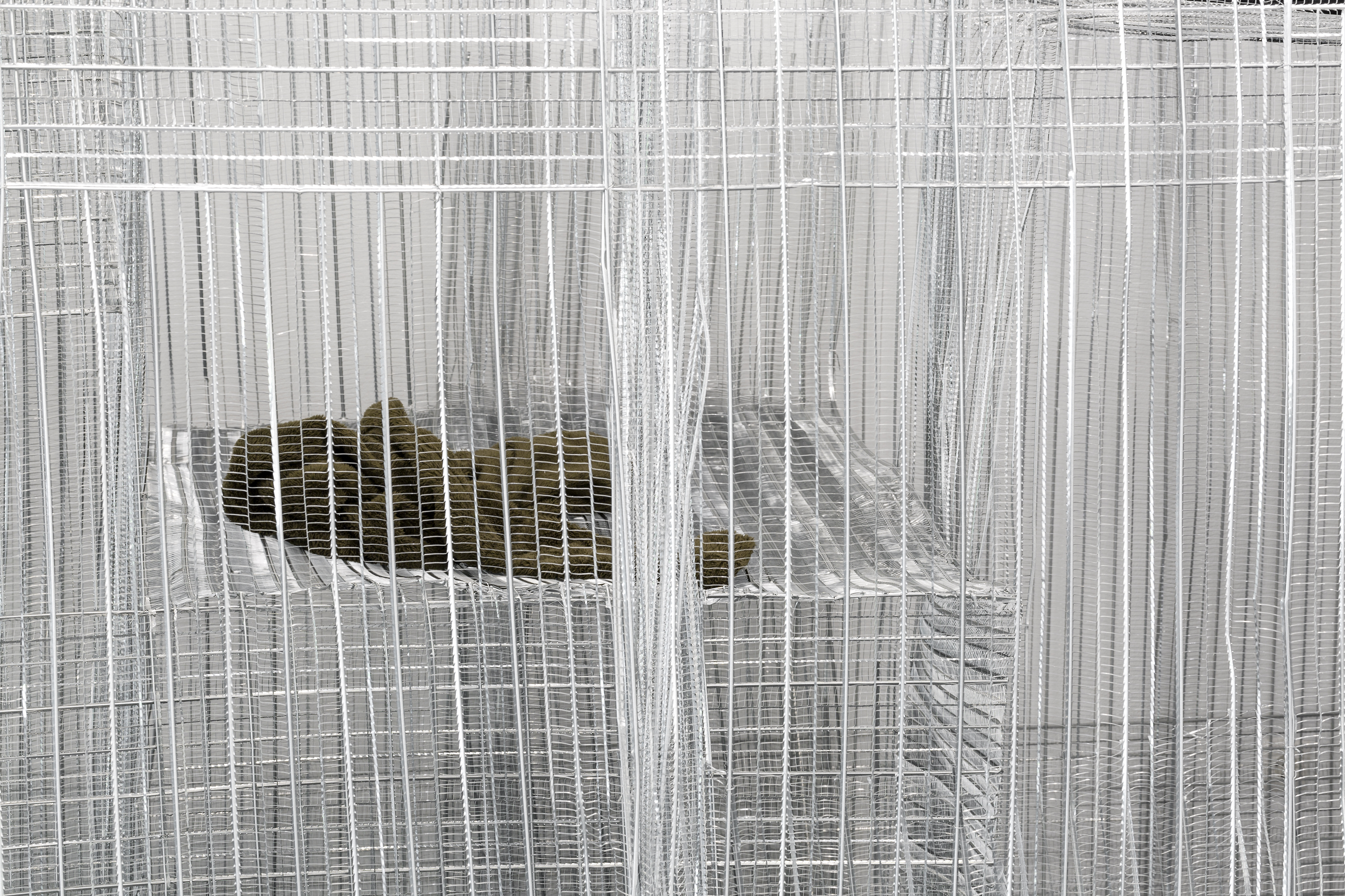 PUTPUTPUT, 2019 ribbed expanded metal, textiles approx. 255 x 760 x 270 cm