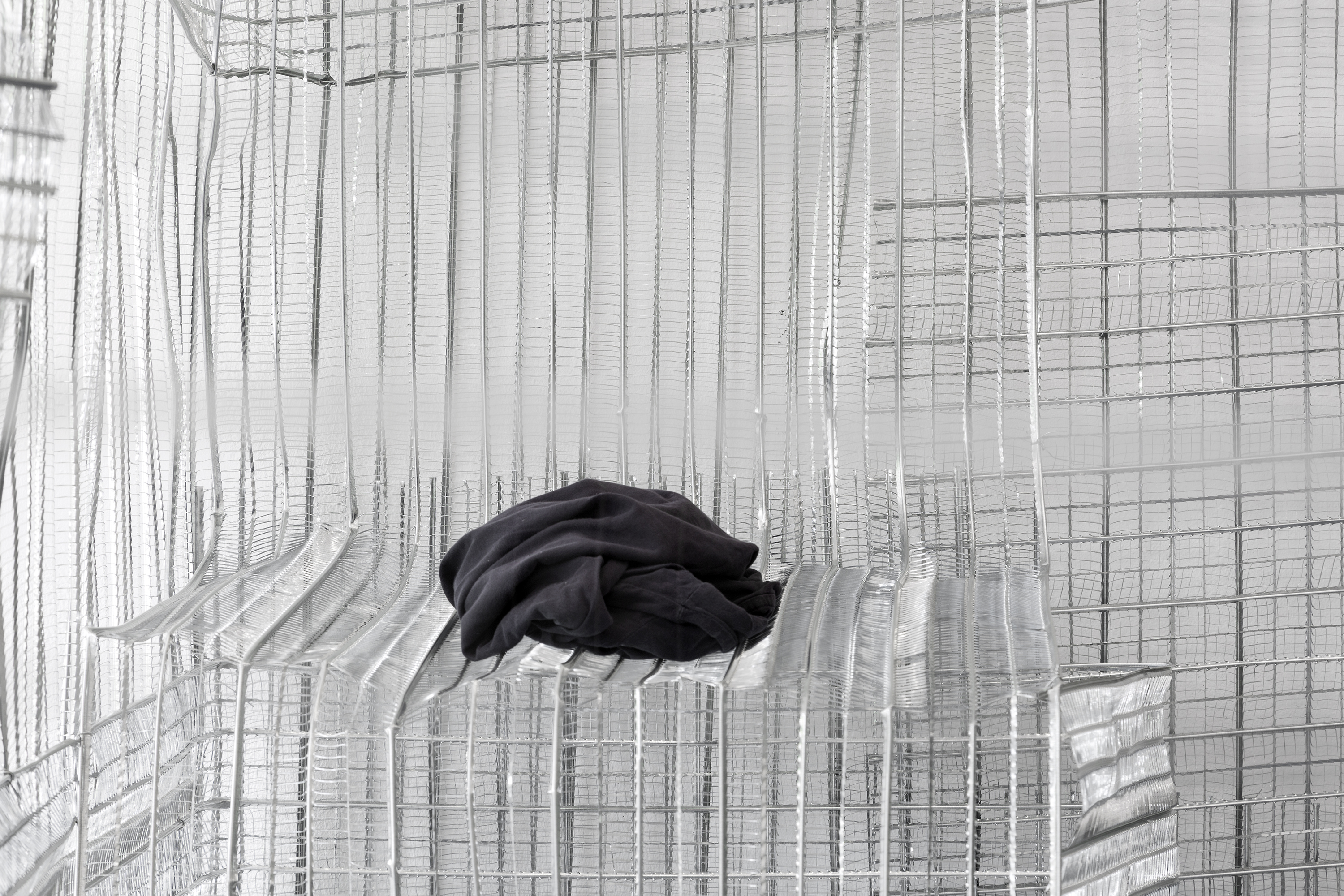 PUTPUTPUT, 2019 ribbed expanded metal, textiles approx. 255 x 760 x 270 cm