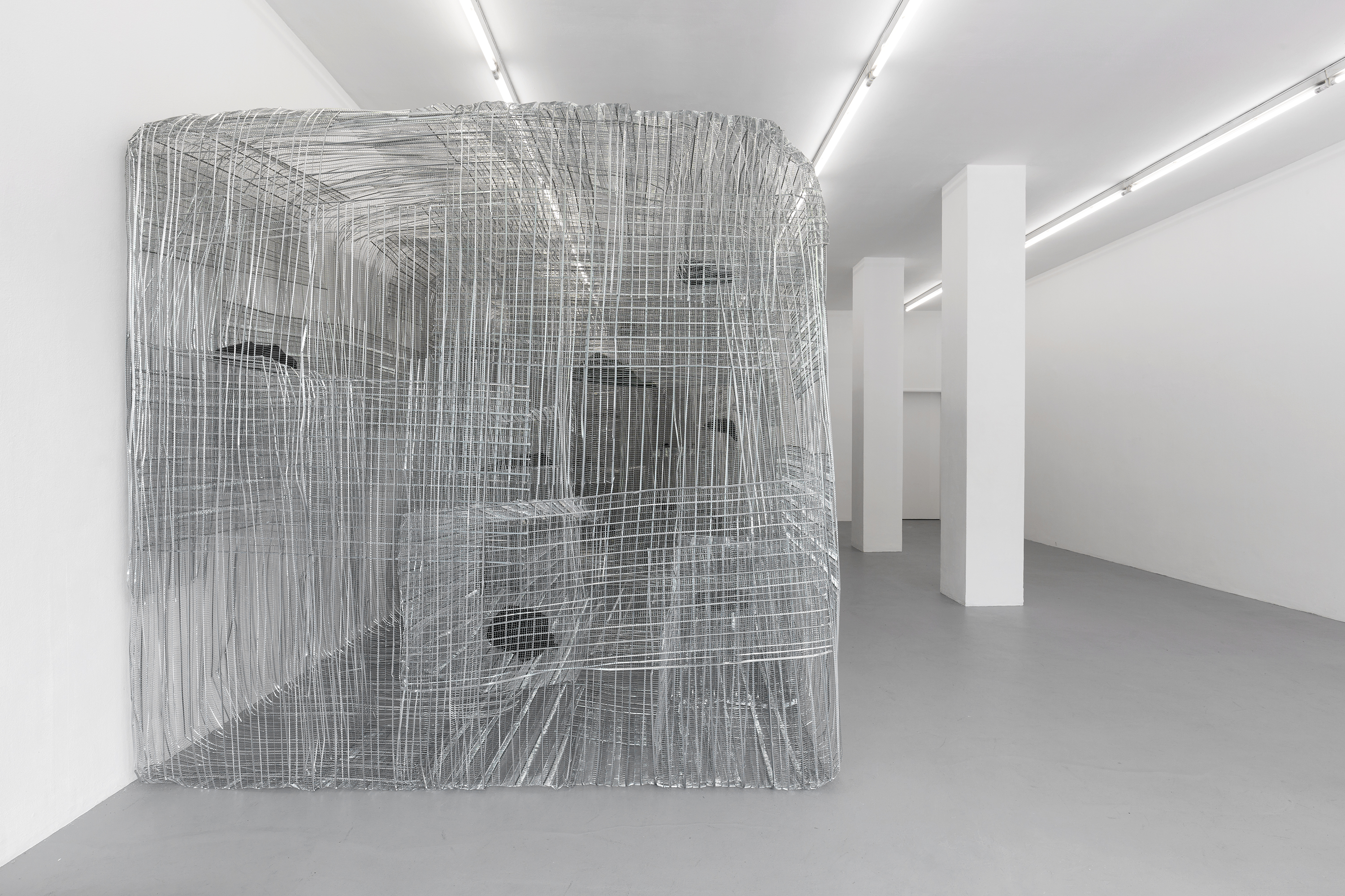 PUTPUTPUT, 2019 ribbed expanded metal, textiles approx. 255 x 760 x 270 cm