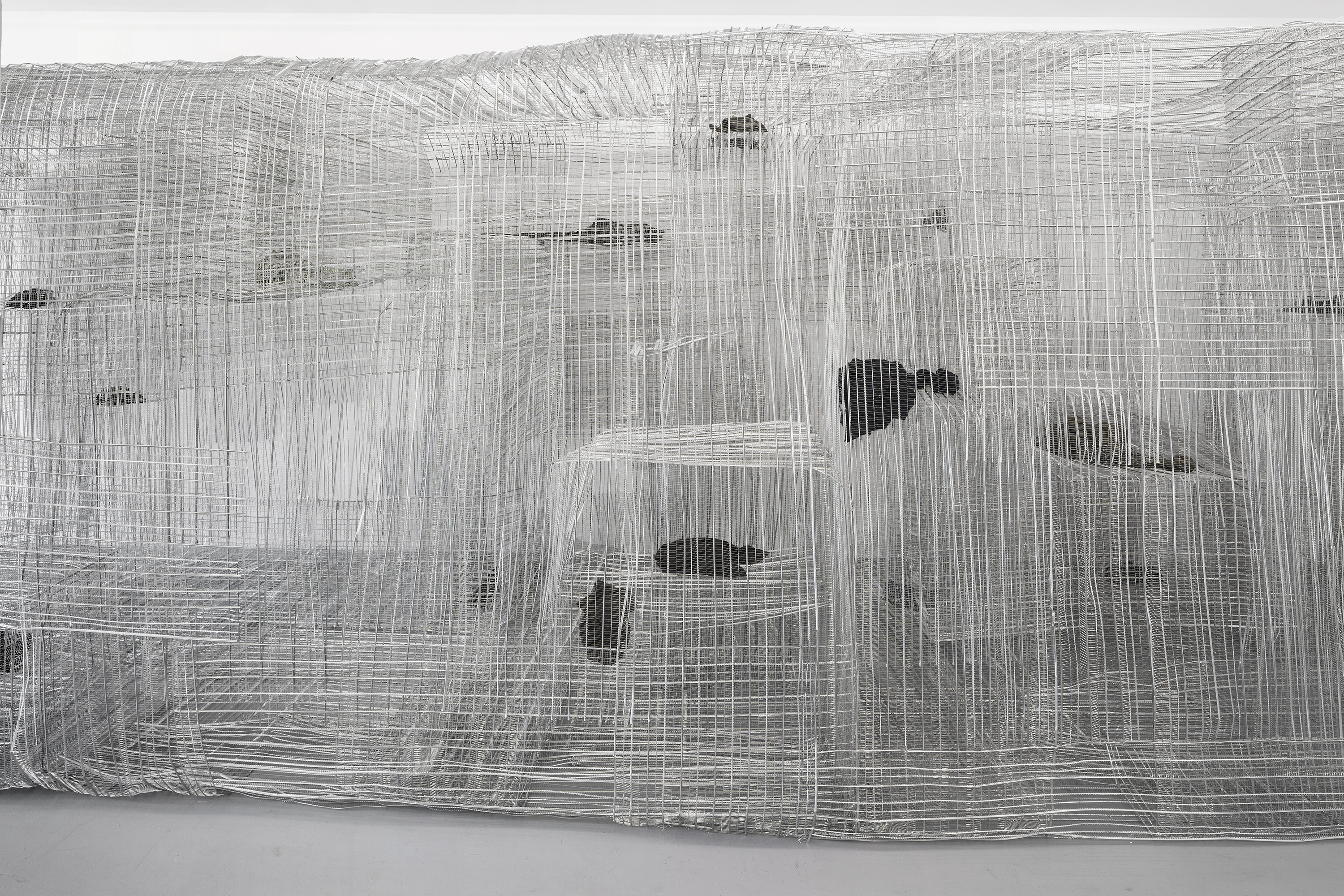 PUTPUTPUT, 2019 ribbed expanded metal, textiles approx. 255 x 760 x 270 cm