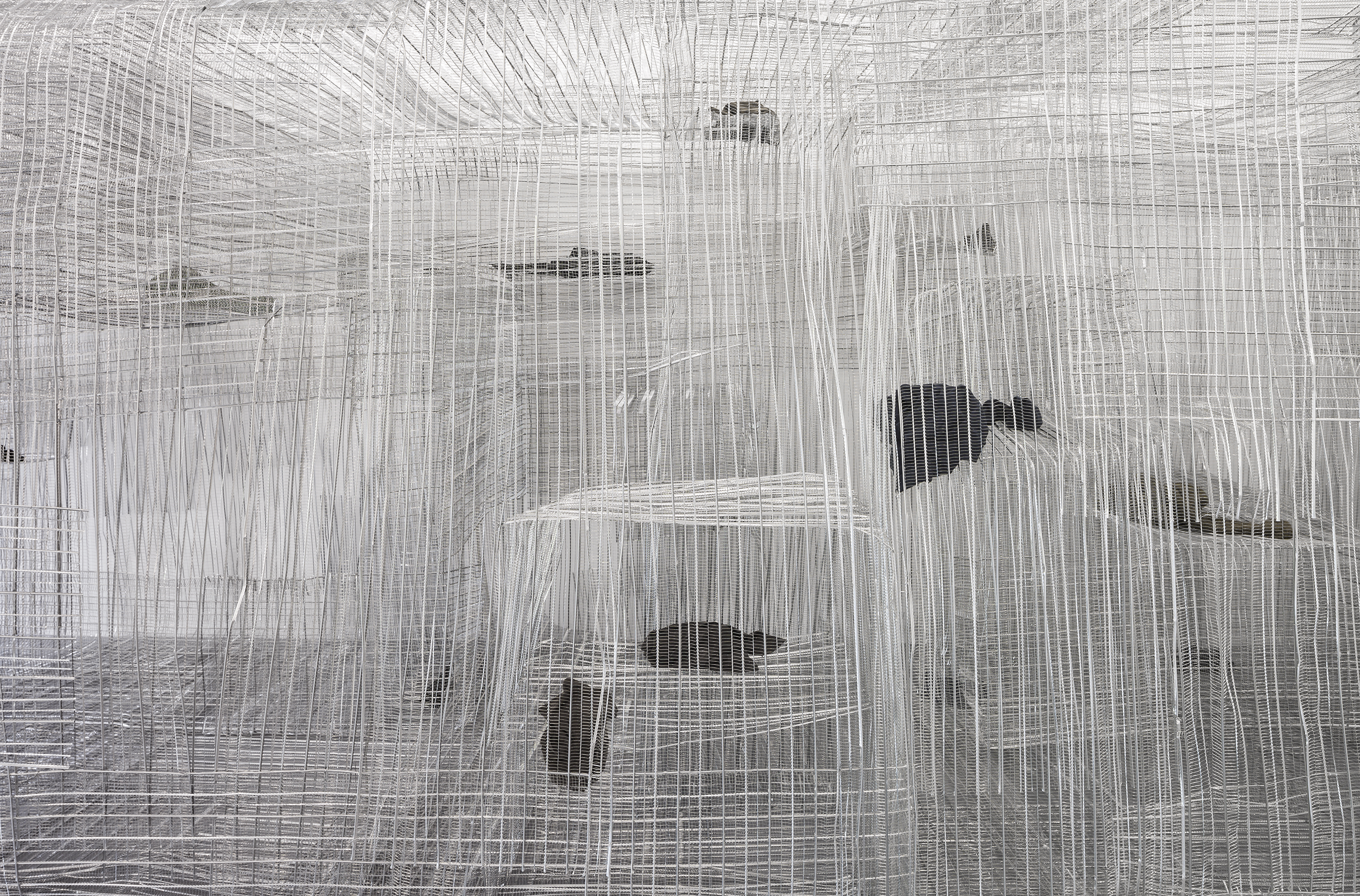 PUTPUTPUT, 2019 ribbed expanded metal, textiles approx. 255 x 760 x 270 cm