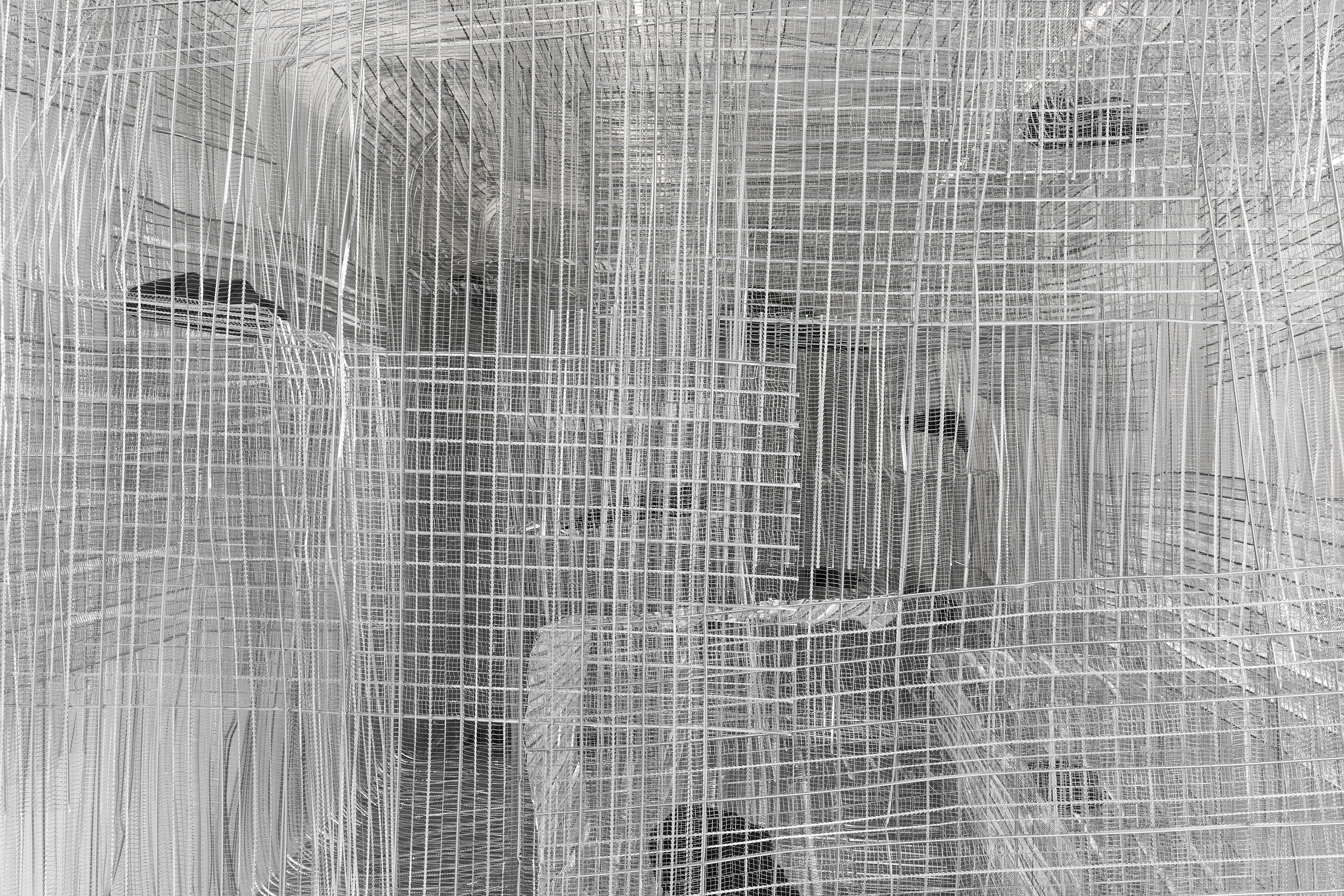PUTPUTPUT, 2019 ribbed expanded metal, textiles approx. 255 x 760 x 270 cm