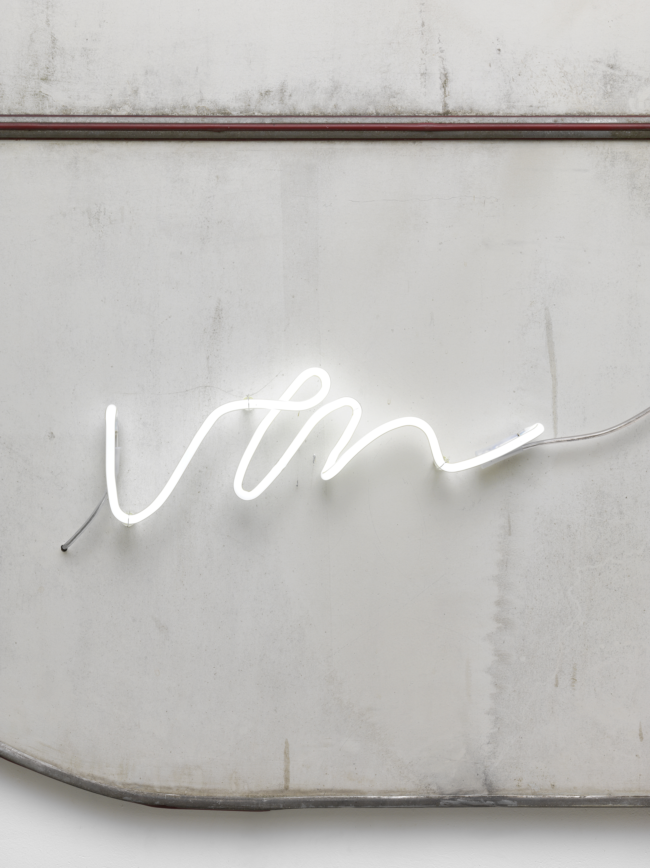 von wegen (wall piece), 2020 aluminium, acrylic glass, plastic, wood, neon letters 192 x 302 x 12 cm private collection